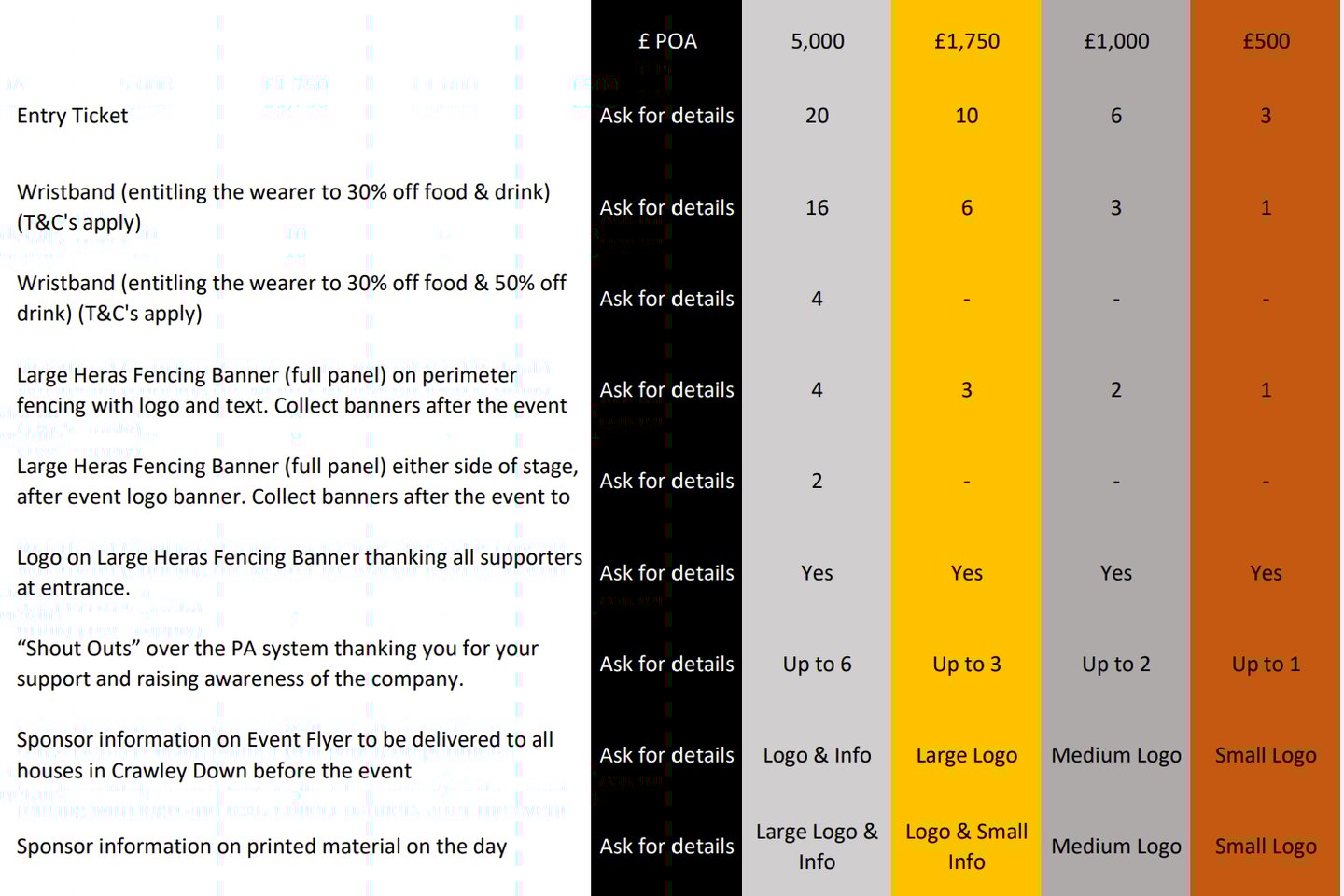 This event is only possible with the support of local businesses and organisations with an interest in our community, without our sponsors this event simply would not happen. 2026 sees an exciting range of packages, designed to enhance the visibility of our sponsors...
