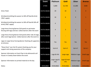 In exchange for your money, your organisation / company will get lots of exposure locally both in advance of, and on the day of, the event!